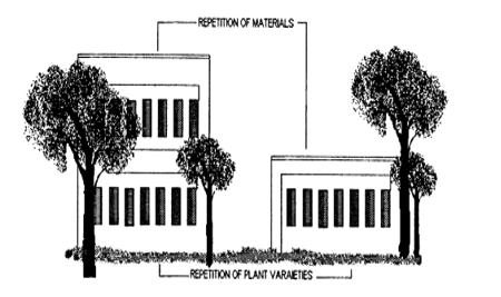 Monotony of design, both within projects and between any project and its surroundings, is prohibited. Variation in detail, form, and siting shall provide visual interest. Site characteristics that may be used for this purpose include building and plant materials, sizes, colors, textures, shapes, massing, rhythms of building components and details, height, roof-line, and setback.