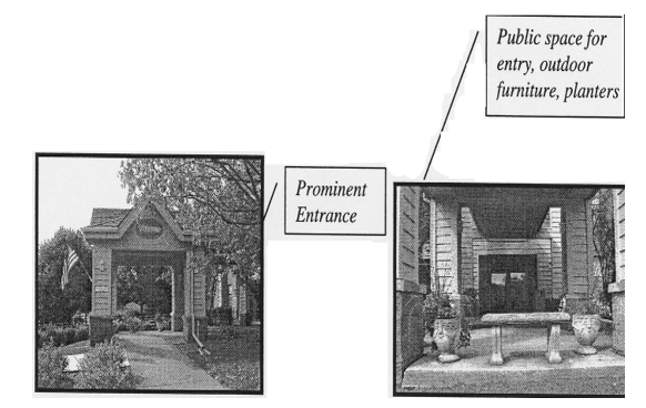 To encourage roadway image or curb appeal projects shall create a variety of building orientation along the roadways; attractive streetscape and architectural detail. All projects shall incorporate two or more of the following design elements: