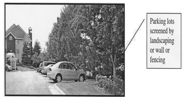 iii) Screening along the edges of off-street parking areas shall be high enough to screen vehicle headlights from adjacent properties, streets, and walkways, which shall be considered a minimum of three (3) feet high but shall not impact vehicle or pedestrian sight lines.