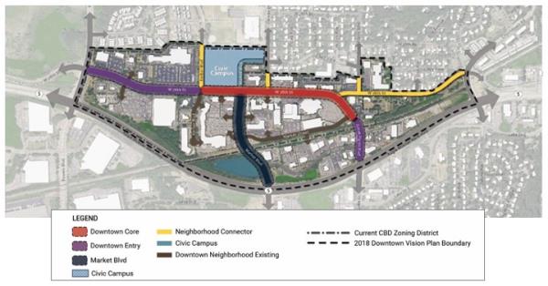 b) The Street Typologies diagram establishes the street type designation for each downtown street including expansion of the future downtown street network.