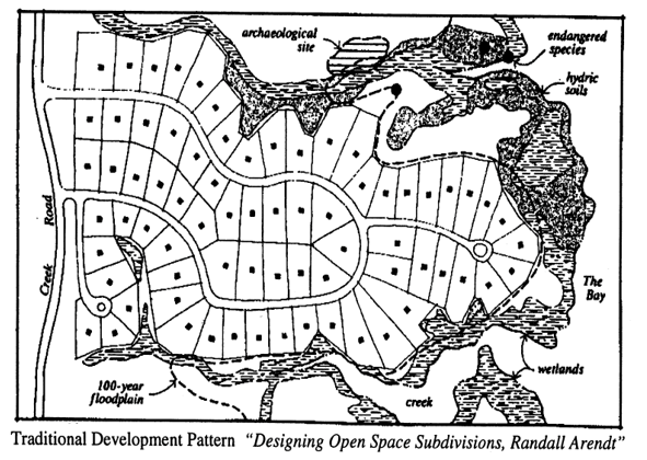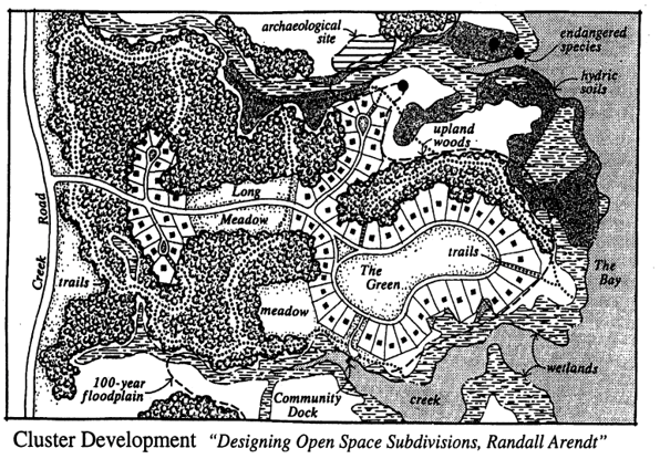 Density clustering shall be allowed as a tool to facilitate cluster development within the Bluff Creek Overlay District. Density clustering may be used in areas where portions of the site are unsuitable for development because of the location of the primary zone. Density clustering shall not be allowed for areas that are otherwise considered unbuildable due to wetlands, lakes and other areas not suitable for building purposes.