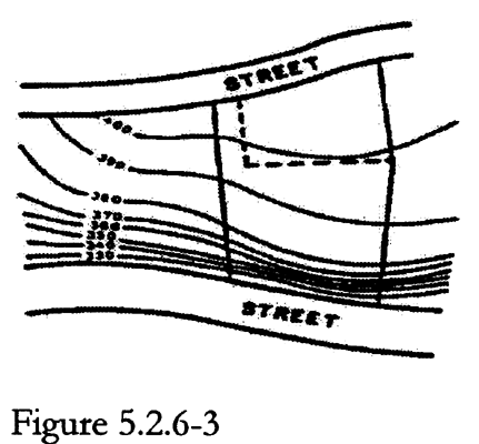 A slope and topographic map for both existing and proposed conditions based on a map depicting contours at an interval of two (2) feet or less. The map shall indicate, through cross-hatching or separate colors, all areas within each slope category described in Table 5.3-1, below.