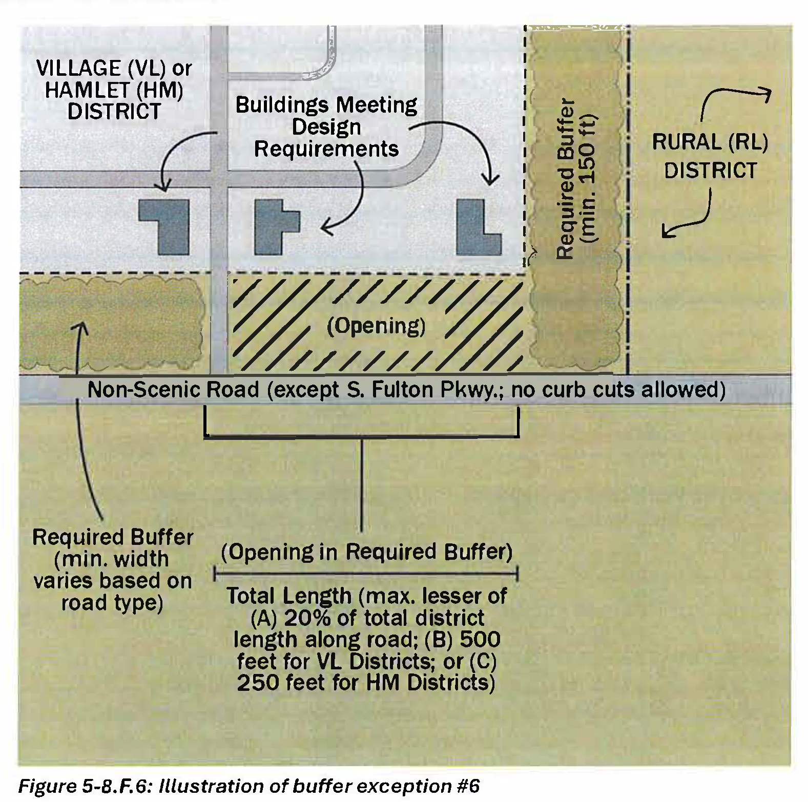 Buffers required by section 5-8 and any required stream buffers;