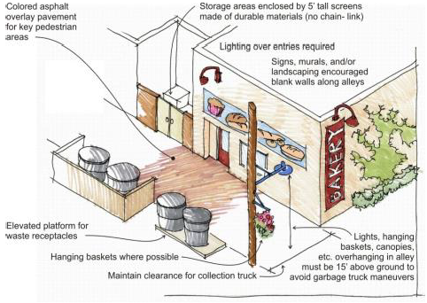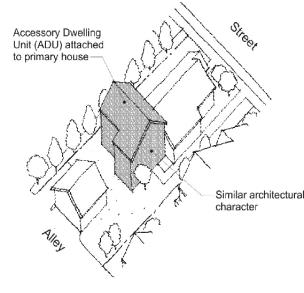 Where lots abut an alley, the garage or off-street parking area should take access from the alley;