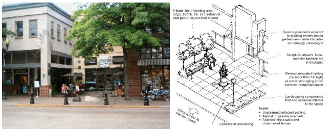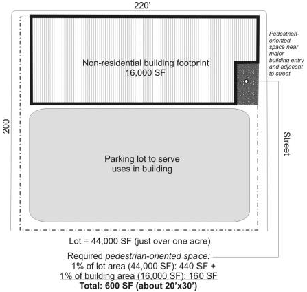 Pedestrian-oriented open space (or pedestrian-oriented space). See section 17.14.030(C)(2)(a) for the definition of "pedestrian-oriented open space" and section 17.14.030(C)(3) for applicable design criteria.
