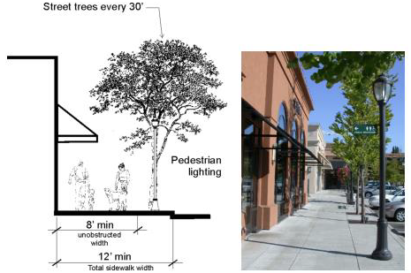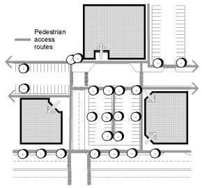 Provide clear access to the sidewalk from the building entry and meet other applicable pedestrian access provisions per section 17.14.030.D.