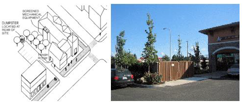 Comply with applicable service area and mechanical equipment, lighting, and parking lot design standards per sections 17.14.030.F through H.