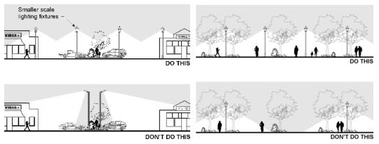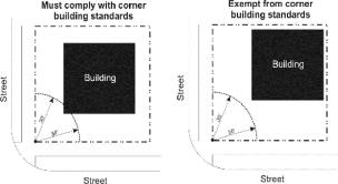 Intent statements are overarching objectives. For example, one of the intent statements for the section on building location and orientation is to "Create an active and safe pedestrian environment."