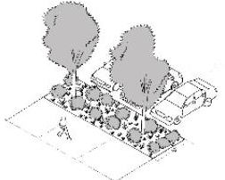 Planting strips with no dimension less than four feet are required adjacent to the primary entry of all dwelling units. This includes townhouses located to the rear of lots off an alley or private internal drive.