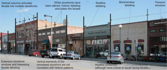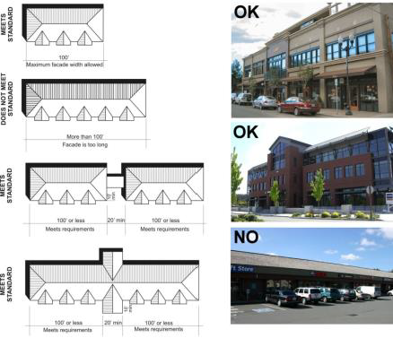 Other design treatments that add variety or provide special visual interest. While the variable use of color on buildings can be effective in reducing the perceived scale of the building and adding visual interest, color changes alone are not sufficient to meet the intent of the guidelines.