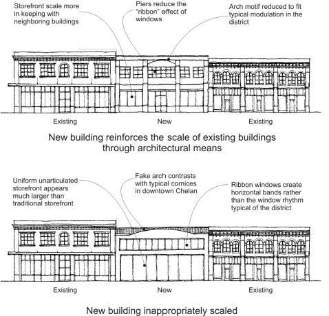 To reduce the apparent bulk and scale of townhouse buildings compatible with the established character of downtown Chelan.