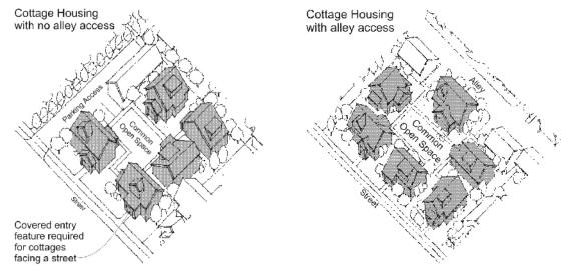 Cottage housing refers to clusters of small detached dwelling units arranged around a common open space.