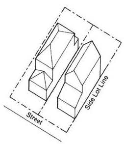 Zero lot lines. A zero lot line development is where houses in a development on a common street frontage are shifted to one side of their lot. This provides for greater usable yard space on each lot.