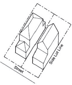 Zero lot lines. A zero (side yard) lot line development is where houses in a development on a common street frontage are shifted to one side of their lot. This provides for greater usable yard space on each lot.