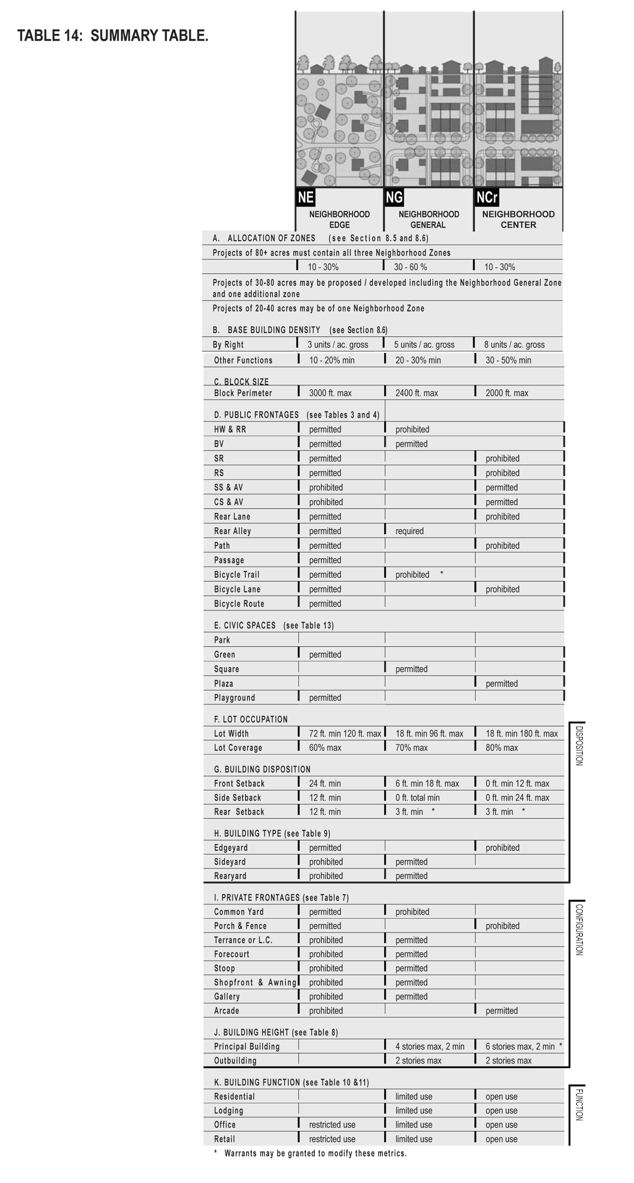 Net developable area, net site area: The developable areas of a site. The net site area shall be allocated to the various neighborhood zones according to the parameters in Table 14-a.