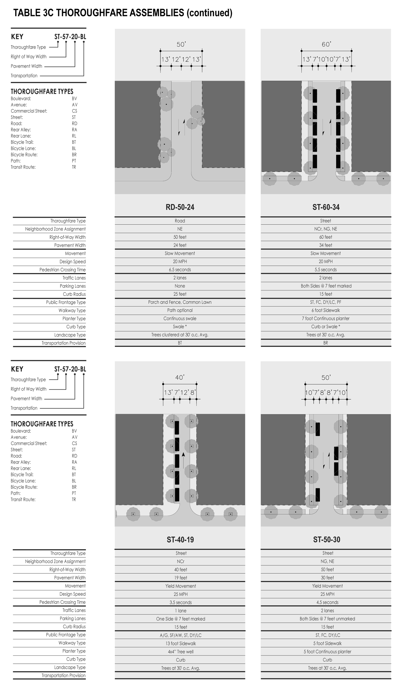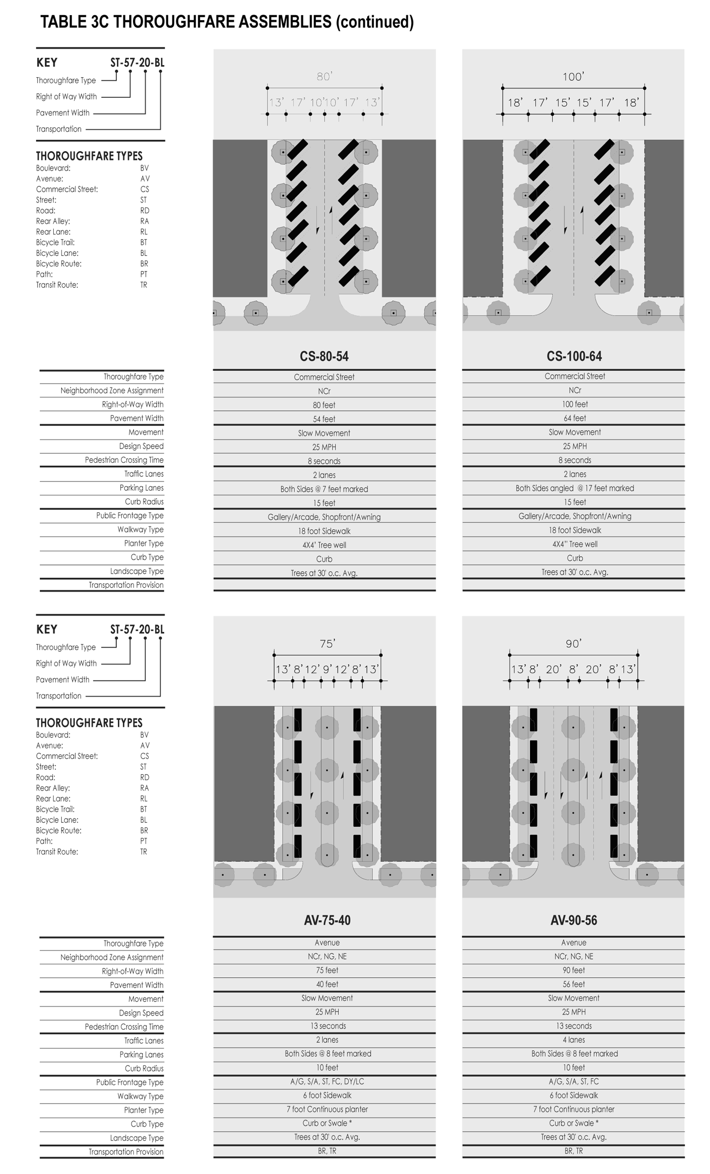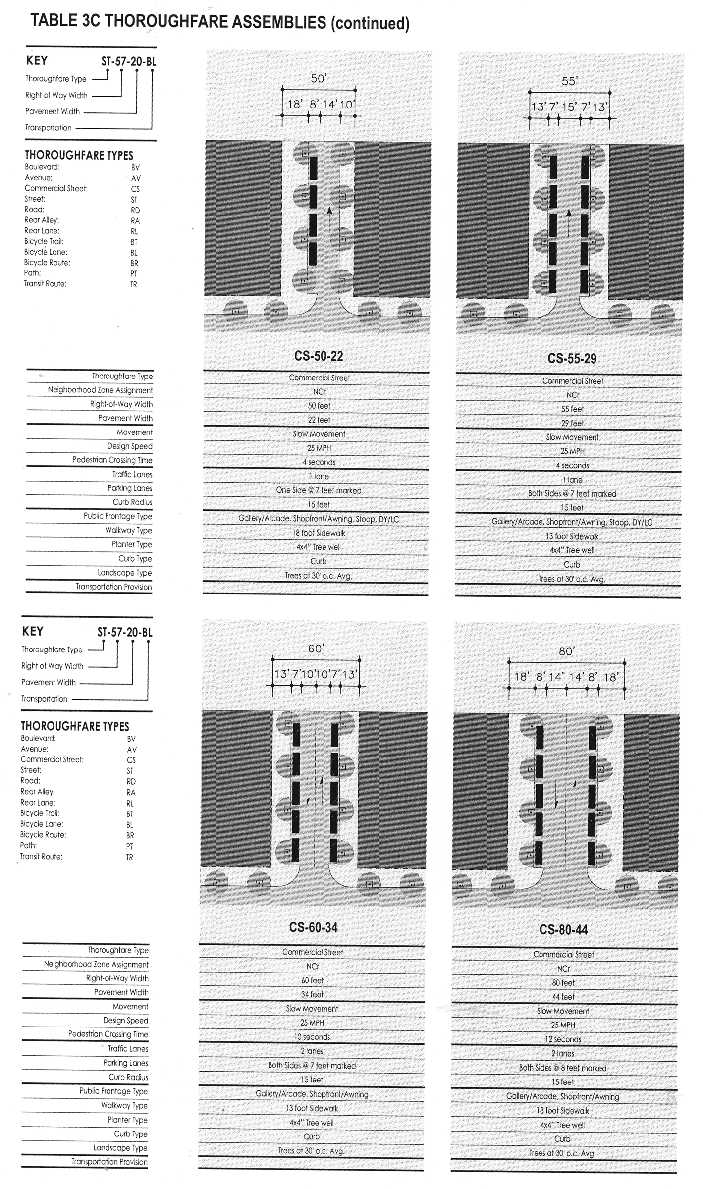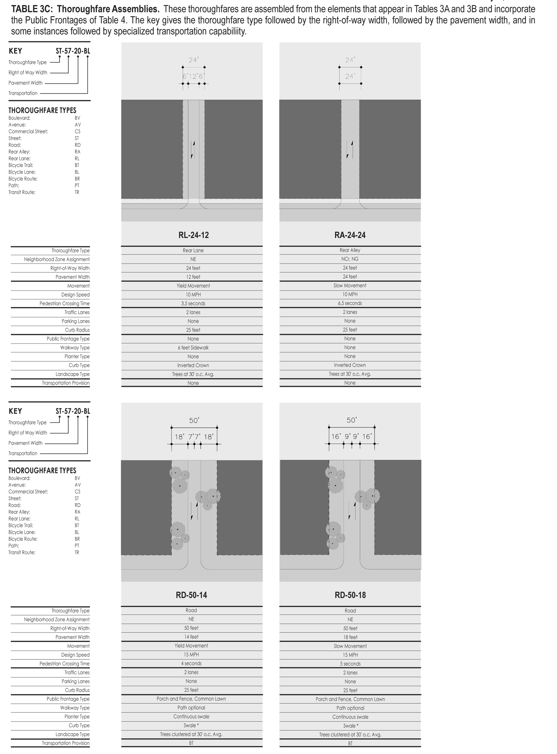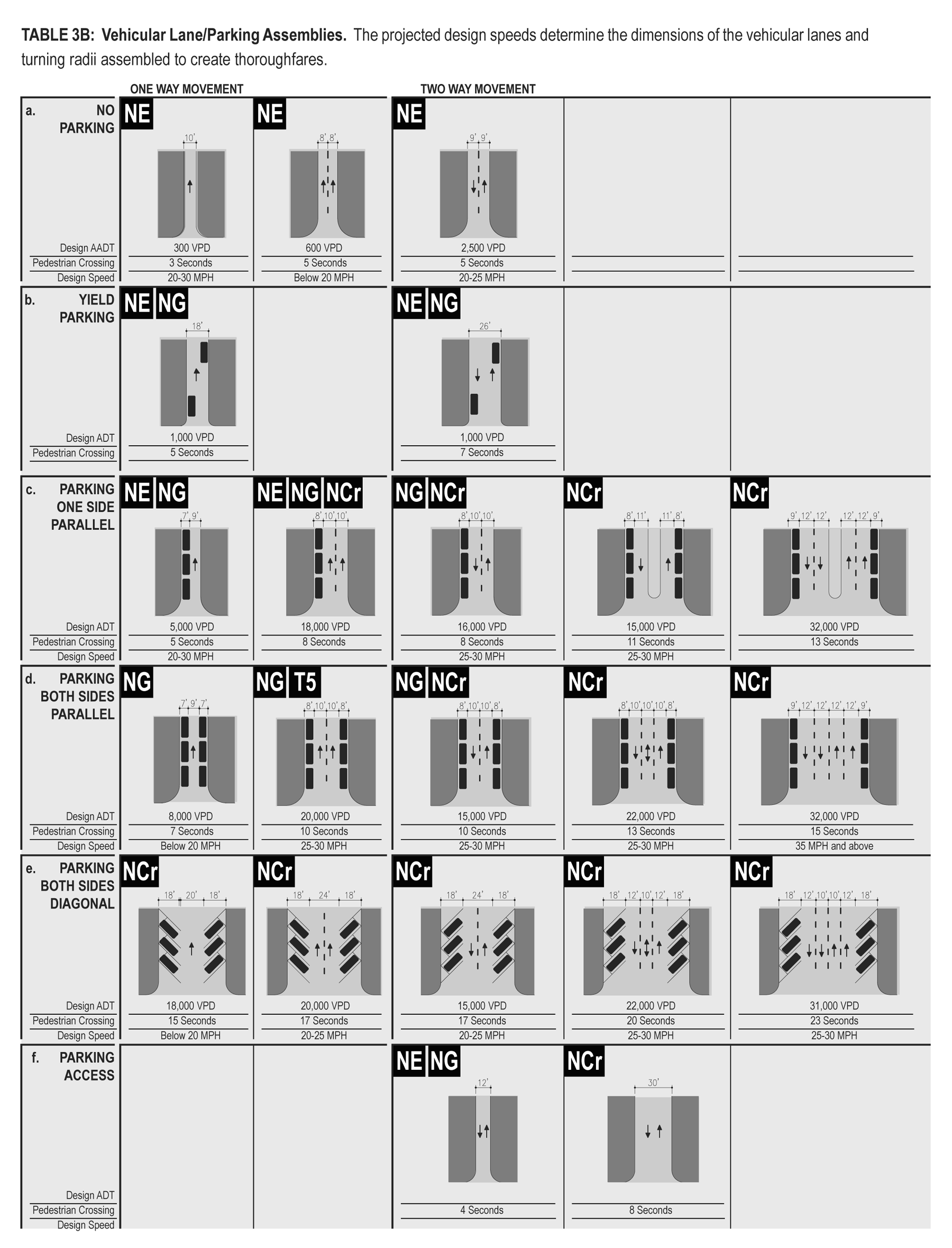 Thoroughfare: A vehicular way incorporating moving lanes and parking lanes within a right-of-way (see Tables 3 and 16).