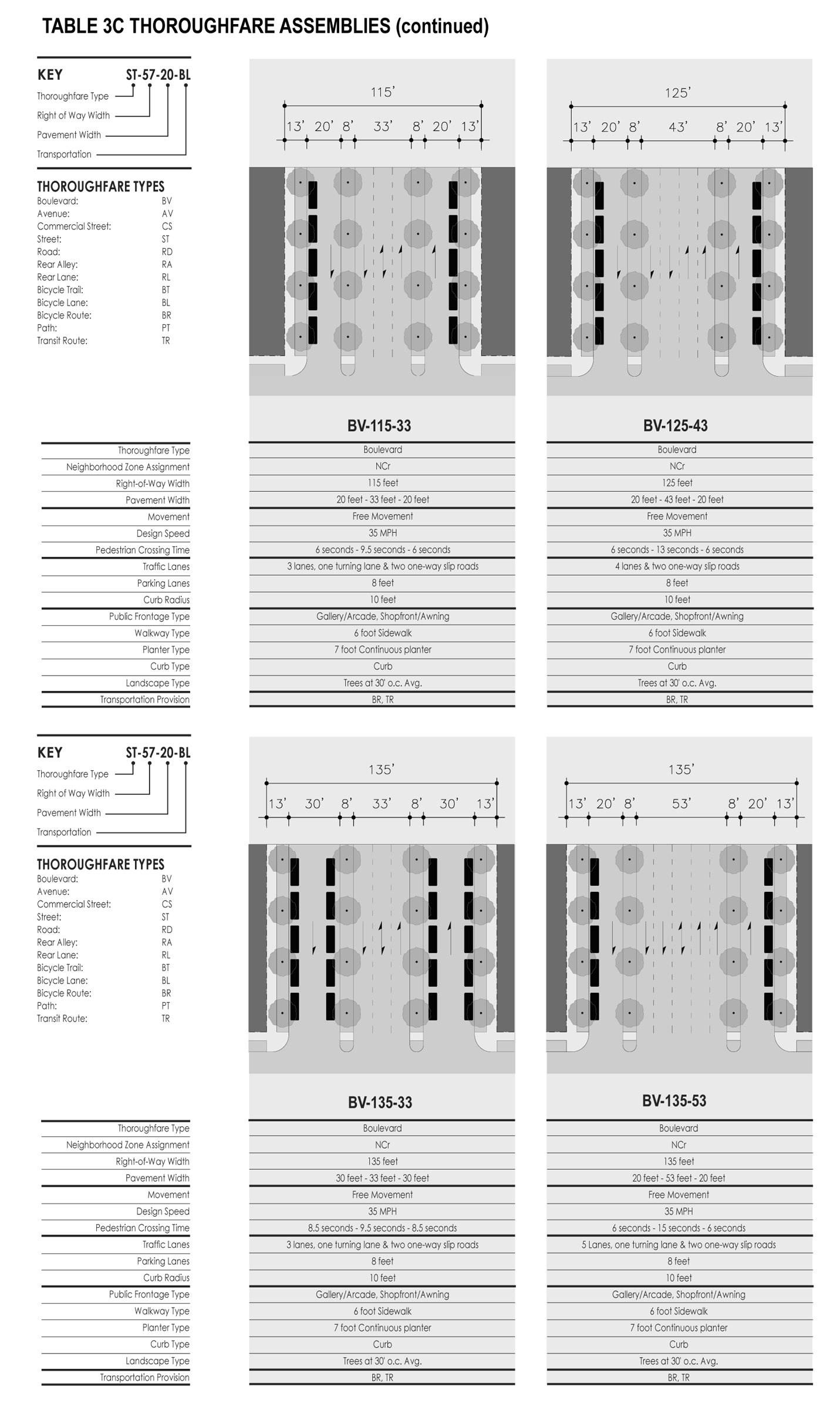 Boulevard (BV): A thoroughfare designed for high vehicular capacity and moderate speed. Boulevards are long-distance thoroughfares traversing urbanized areas. Boulevards are usually equipped with slip roads buffering sidewalks and buildings. Boulevards become arterials upon exiting urban areas.