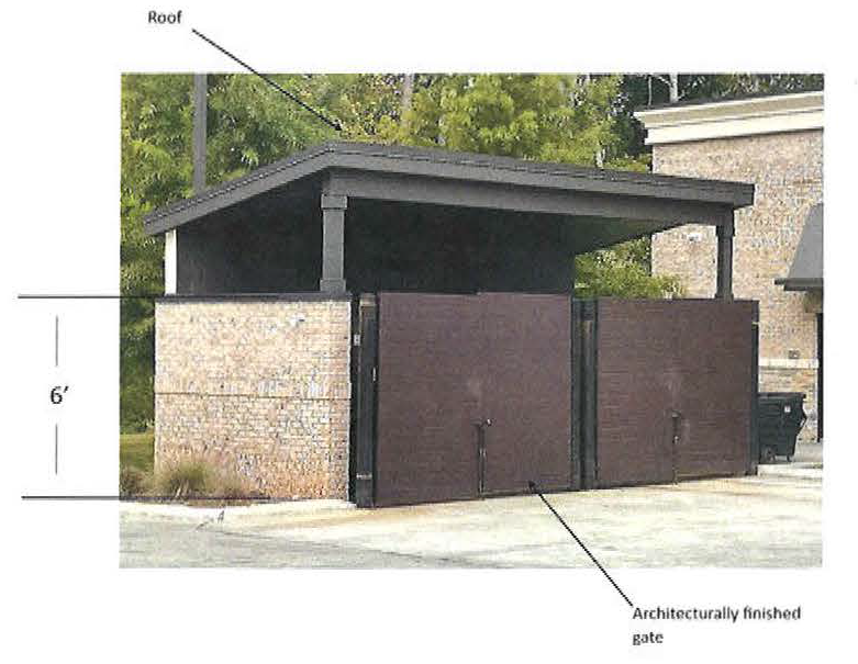 All dumpsters and other similar areas shall be gated on the fourth side, and the gate shall be architecturally finished.