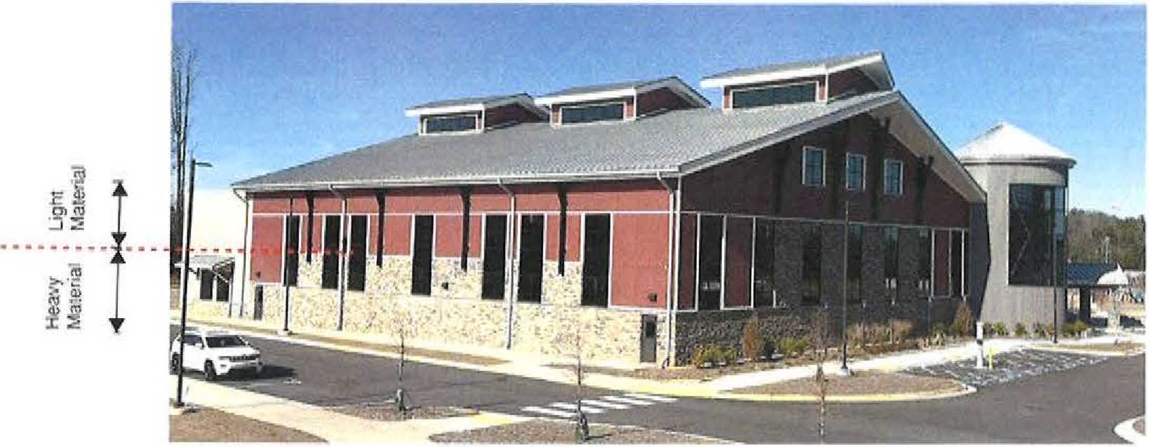 The heavier exterior building materials shall be below the lighter exterior building materials.