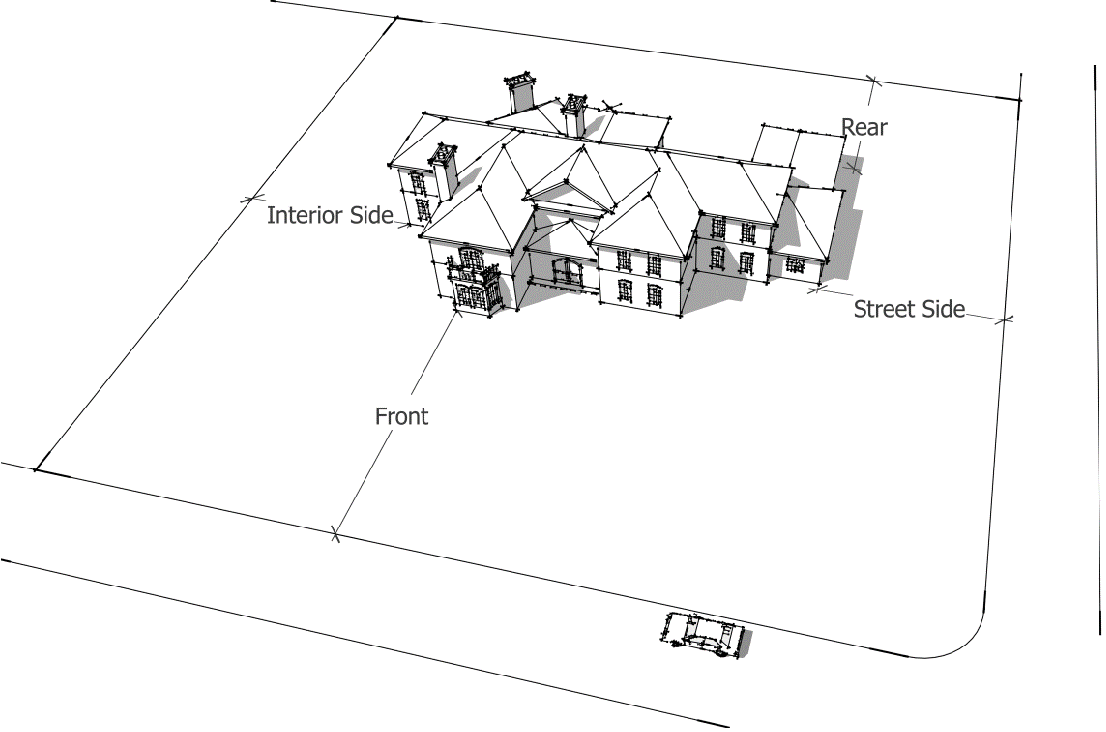 Street Side Setbacks. Street side setbacks are measured from street side property lines.