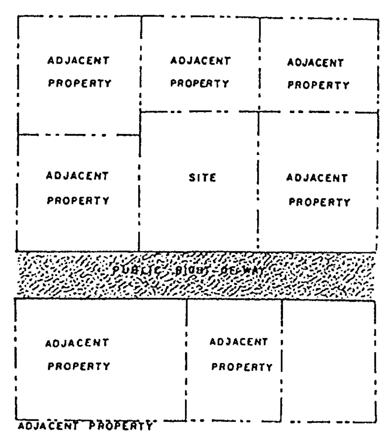 Adjacent properties. Those properties which are either (a) contiguous, or (b) separated only by a public right-of-way.