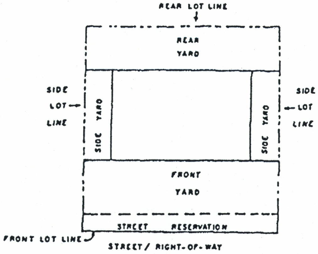 Yard. An open space unoccupied and unobstructed by any structure or portion of a structure from thirty (30) inches above the general ground level of the graded lot upward; provided that fences, walls, poles, posts and other customary yard accessories and furniture may be permitted in any yard, subject to the other requirements of this zoning ordinance. A yard may be: (1) the required yard—the minimum yard dimensions required by this zoning ordinance for a lot; or (2) the established yard—the yard established by the location of a principal building or structure on the lot. All references to yards in this zoning ordinance shall be deemed to be required yards, unless the language or context of the reference clearly indicates established yards are intended.
