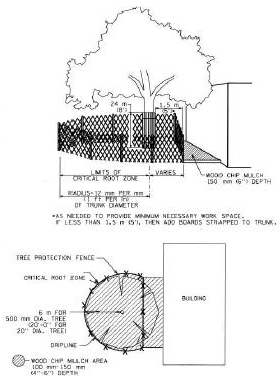 • Reference above to determine minimum CRZ to be preserved at natural grade, with natural ground cover; and