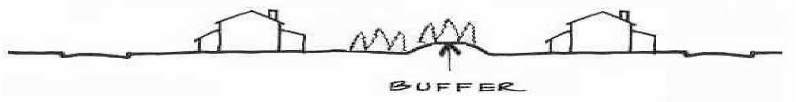 Eliminate or minimize conflicts between potentially incompatible, but otherwise permitted land uses on adjoining lots through buffering, which may include a combination of setbacks and visual buffers or barriers.