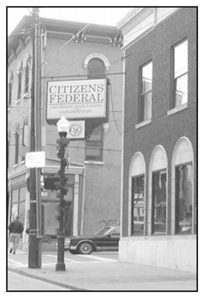 building at a perpendicular angle or approximately perpendicular angle. A Projecting