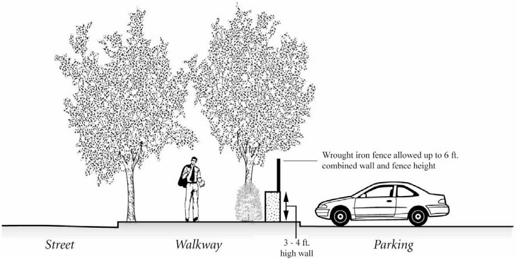 Rowhouses. Rowhouses may have a front yard up to ten feet deep.