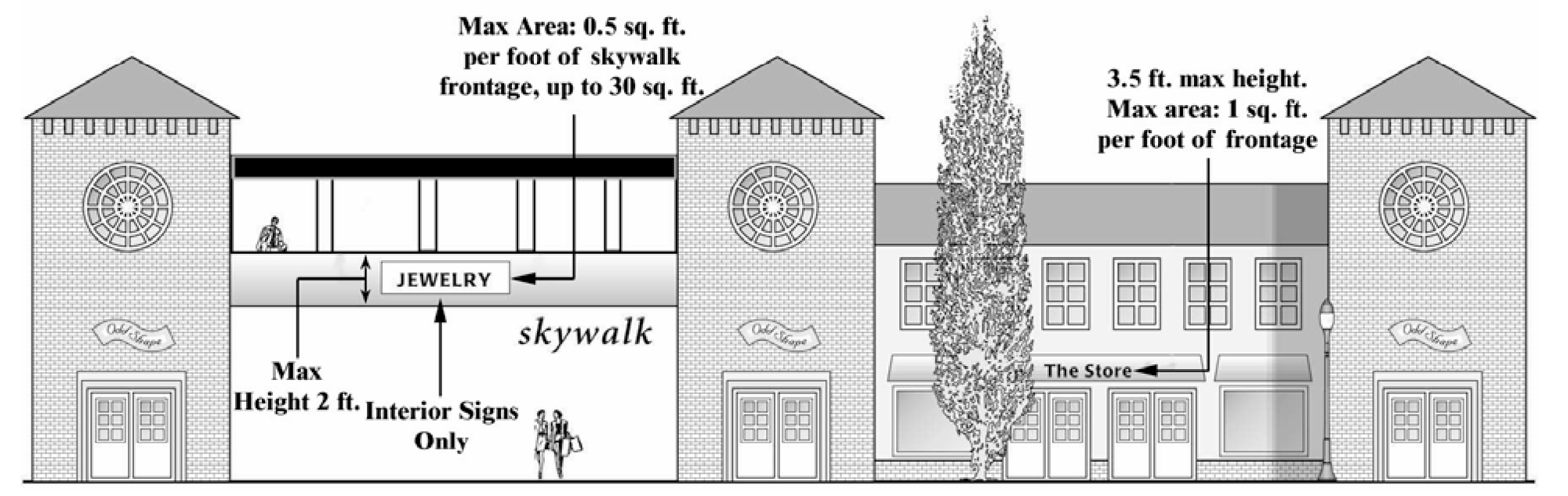 Skywalk-Level Wall Signs. (Refer to Figure 1411-39-B). Skywalk-level signs must comply with the following: