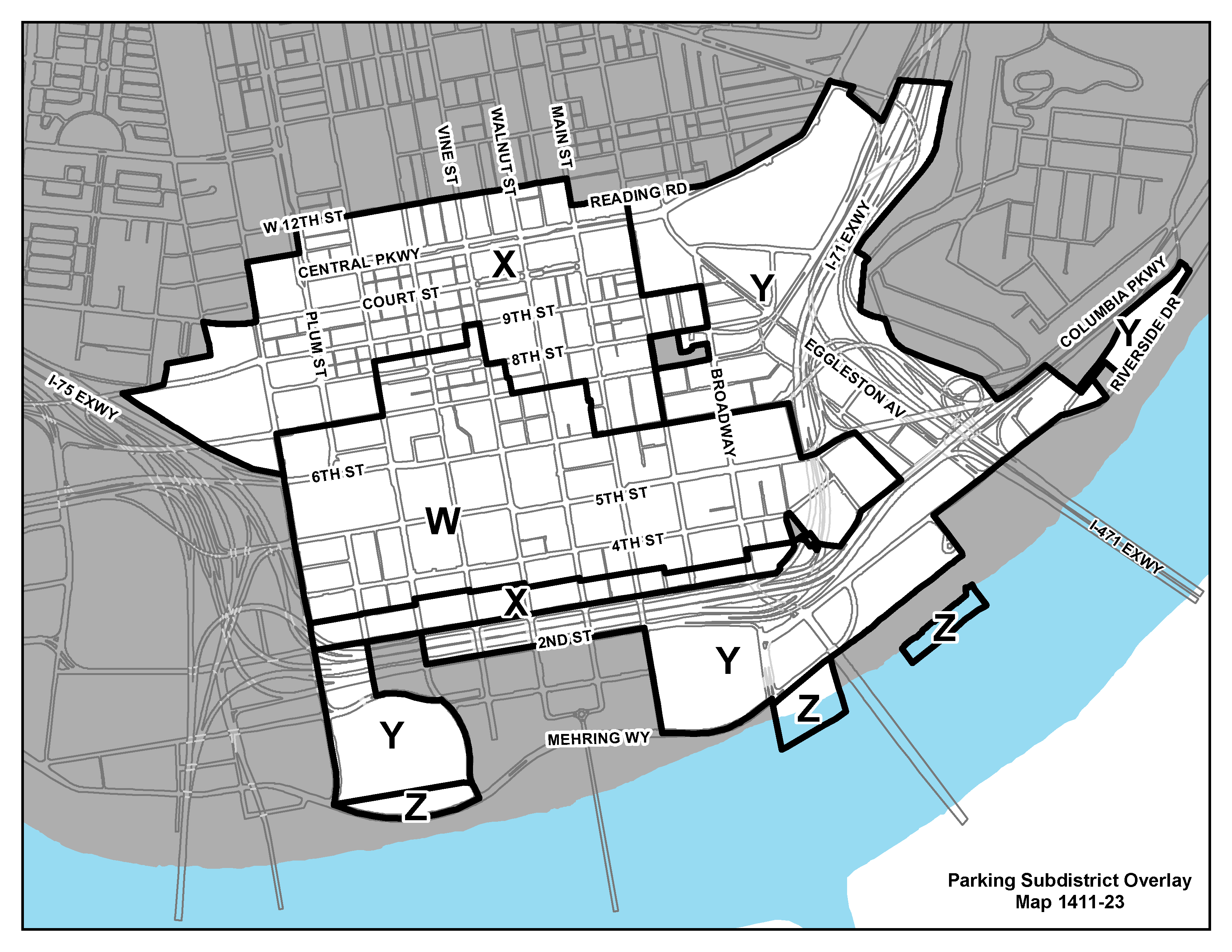 The DD zoning district is divided into the parking subdistricts depicted on Map 1411-23: Parking Subdistricts Overlay in Downtown Development Districts.