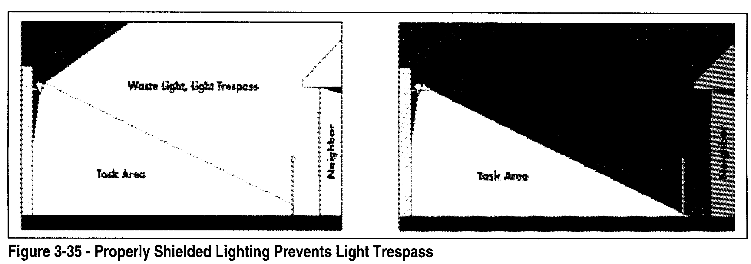 Prevent nuisances caused by unnecessary light intensity, direct glare, and light trespass;
