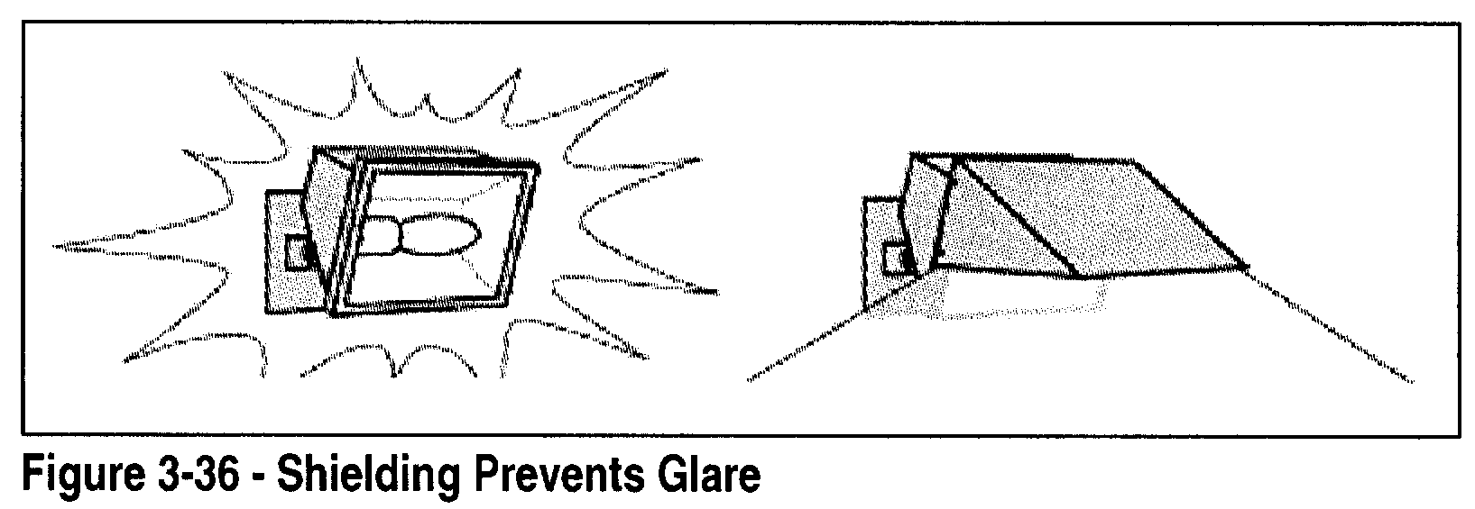 Indiscriminate and excessive lighting should be avoided. Light should be directed only to where it is needed with appropriate intensity.
