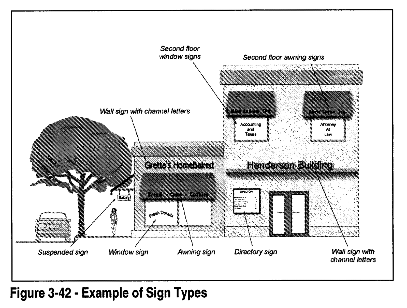 Icon signs using shapes or symbols uniquely suited to the business, creative shapes, and three- dimensional signs are encouraged. See Figure 3-48.