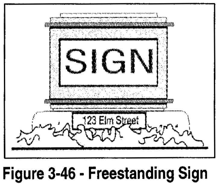 Freestanding signs. The following standards apply to freestanding signs (Figure 3-46) in all zoning districts where allowed by Section 106.38.060 (Zoning District Sign Standards):