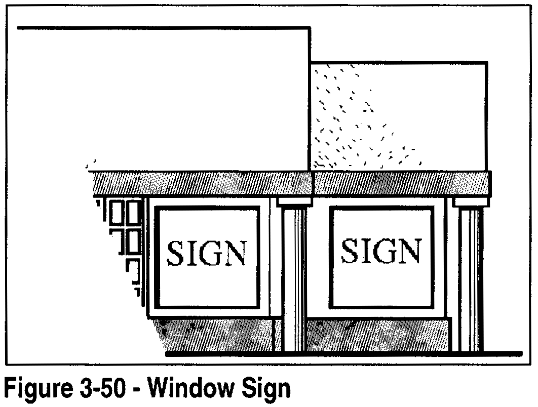 Window signs. The following standards apply to window signs (see Figure 3-50) where allowed by Section 106.38.060 (Zoning District Sign Standards):