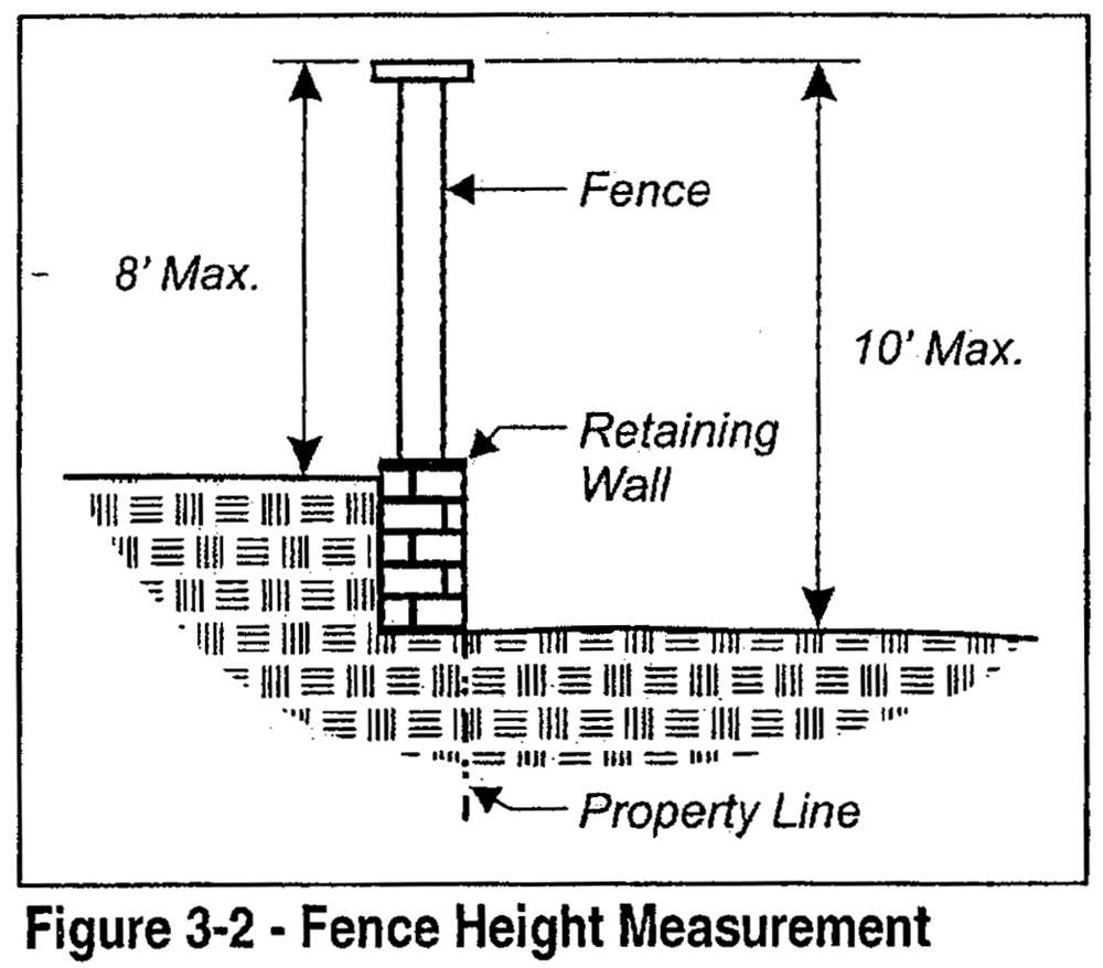 A retaining wall less than three feet in height above finished grade. A higher wall may be allowed within a required setback with Design Review by the Director.