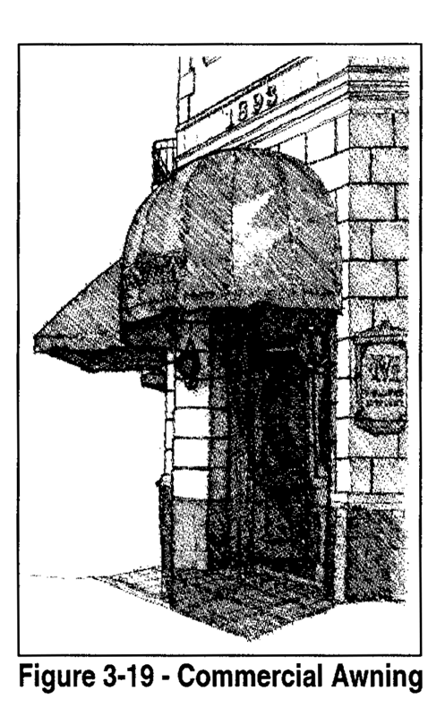 Along with typical auto-oriented wall and freestanding signage, permanent, pedestrian-oriented window, awning, projecting, and suspended signs should also be provided, that do not obstruct or create a safety hazard for pedestrians or cyclists.