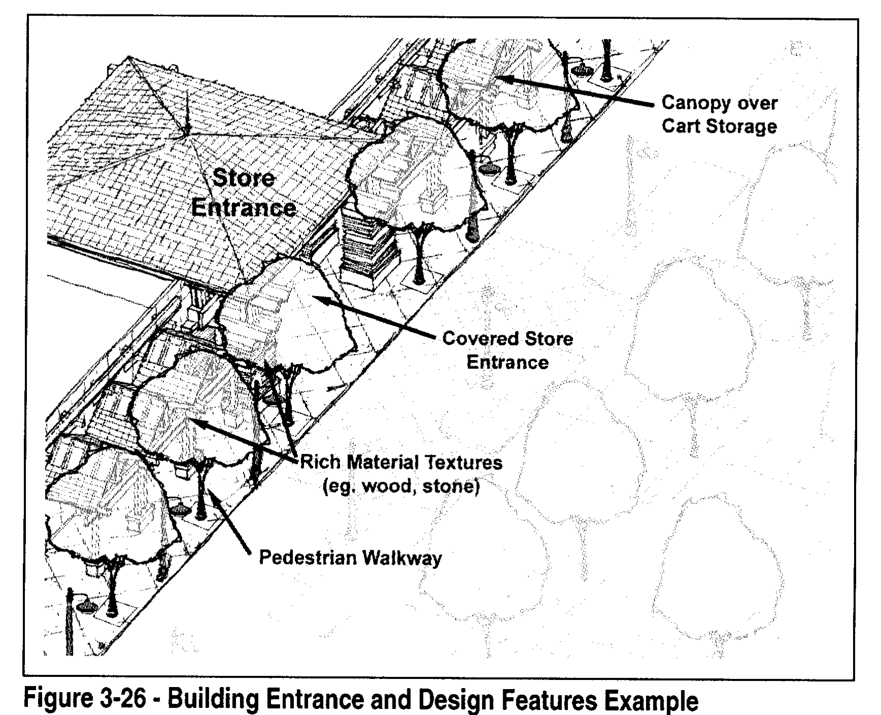 The design elements of each project (including site design, architecture, landscaping, signs, and parking design) will be reviewed on a comprehensive basis.