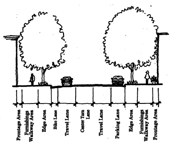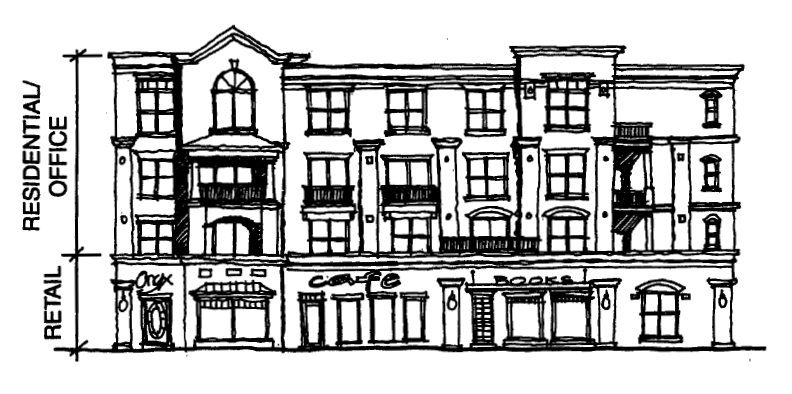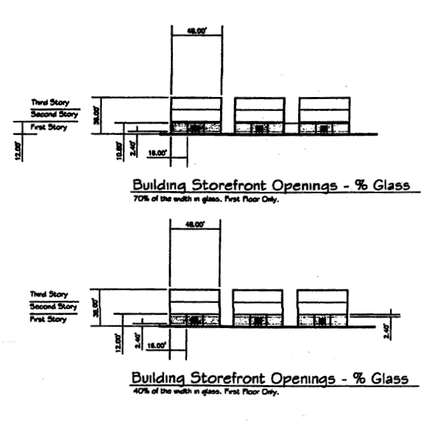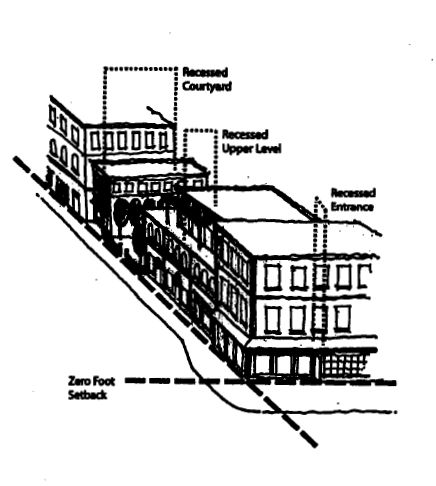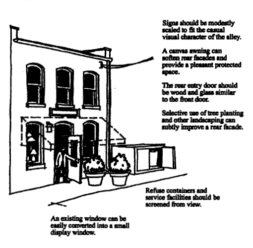 Service alley: A service alley or designed loading space shall be reserved at the rear of the building.