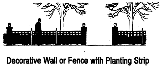 Edges: Courtyards shall have recognizable edges defined on at least three sides by buildings, walls, elements of landscaping, and elements of street furniture, in order to create a strong sense of enclosure.
