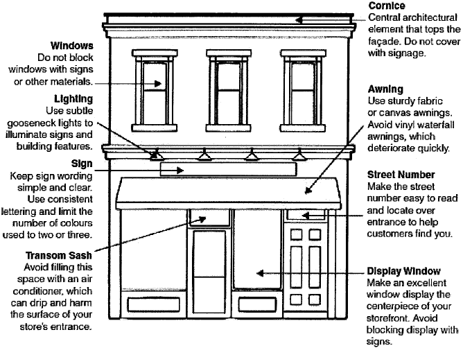 •If an awning exists, affixed signage may consist of lettering printed on the awning fringe.