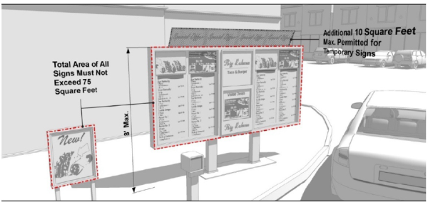 This section describes the types of signs allowed with a sign permit. Specific regulations on each sign type may include further restrictions on which districts and/or uses within a district may utilize these sign types.