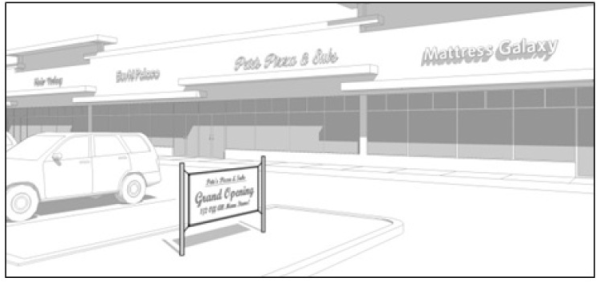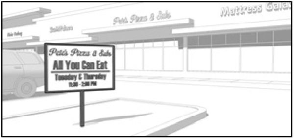 A-FRAME SIGN: A temporary sign ordinarily in the shape of the letter “A” or some variation thereof, which is displayed on the ground, not permanently attached to the ground, and usually two-sided, generally connected at the top and separated at the bottom.