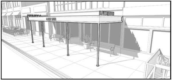 AWNING: An awning is a roof-like cover designed for protection from the weather or as a decorative embellishment, which projects from a wall or roof of a structure over a window, walkway, or door, with no supports that extend to the ground.