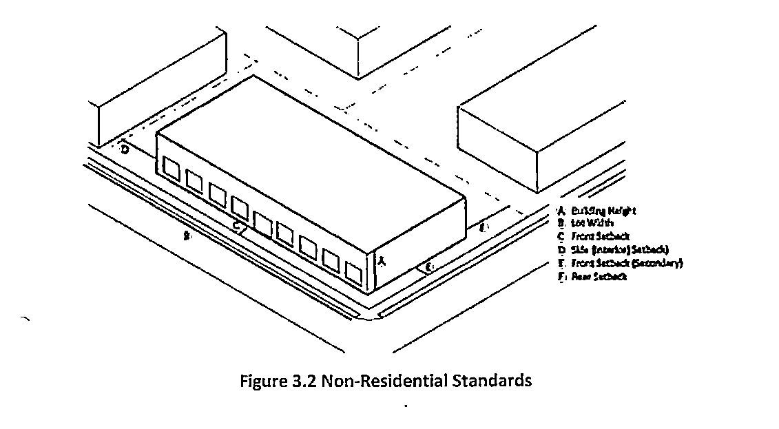 Dimensional requirements for non-residential zoning districts are established in Table 3.5, Non-Residential Zoning Districts Dimensional Requirements. Buffer requirements on Table 5.3 also apply.