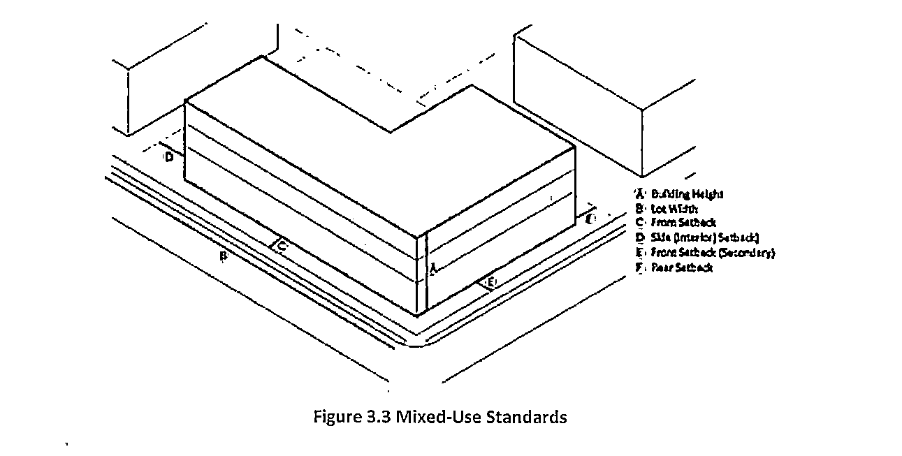 Dimensional requirements for mixed use zoning districts are established in Table 3.6, Mixed-Use Zoning Districts Dimensional Requirements. Buffer requirements on Table 5.3 also apply.