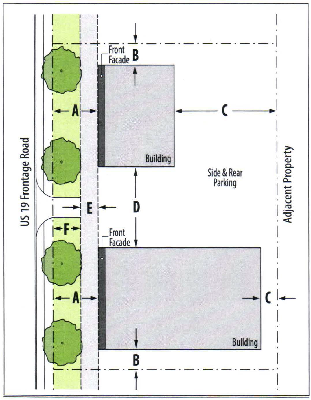 Standards regulating development in the US 19 District are included in Divisions 3, 4, 5, and 6 and are summarized below: