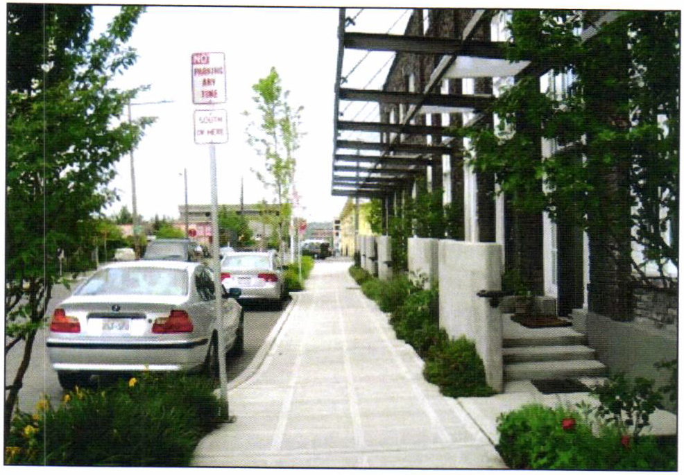 The screening of vehicles from view along public sidewalks.